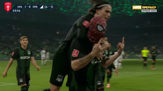 Полузащитник "Краснодара" Никита Кривцов получил предупреждение за празднование гола "Оренбургу" в маске Человека паука. 23-летний полузащитник открыл счёт в кубковой встрече на пятой минуте, а затем получил жёлтую карточку от главного арбитра Ринэля Зиякова за празднование. Это его четвертое предупреждение в Кубке России. Следующий матч хавбек пропустит из-за дисквалификации. Сейчас идёт 37 минута встречи, счёт 1:0 в пользу хозяев. Это ответная игра в рамках 1/4 финала Пути РПЛ Кубка России. Первый матч "быки" выиграли на выезде со счётом 3:1. Дубль в составе команды Мурада Мусаева оформил Джон Кордоба, а ещё один мяч забил Данила Козлов.