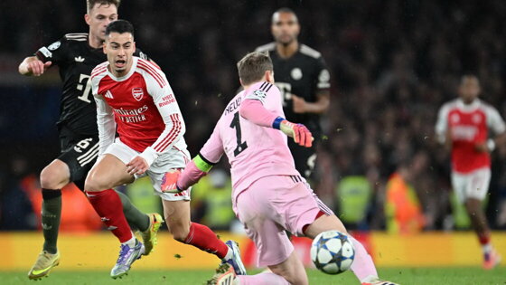«Бавария» после ошибки голкипера пропустила от «Арсенала» в Лиге чемпионов. 39-летний вратарь выбежал к центру поля и не смог перехватить мяч при контратаке.