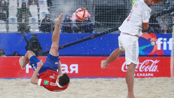 Сборная России обыграла национальную команду Испании в матче 1/4 финала чемпионата мира по пляжному футболу. Встреча завершилась со счетом 4:2. В составе российской команды точными ударами отметились Андрей Котенев, Борис Никоноров, Алексей Макаров и Артур Папоротный. За Испанию отличились Эдуард и Антонио. В полуфинале россияне сыграют со сборной Швейцарии, которая разгромила Уругвай со счетом 10:1. На групповом этапе Россия в дополнительное время обыграла команду США (5:4), а также одержала победу над Парагваем в серии пенальти 4:4 (5:4) и Японией (7:1). В активе хозяев турнира шесть набранных очков, столько же у сборной Японии, но разница забитых и пропущенных мячей позволила россиянам возглавить группу А. "Газета.Ru" вела онлайн-трансляцию поединка. Ранее сборная России в матче третьего тура группового этапа чемпионата мира по пляжному футболу одержала крупную победу над командой Японии со счетом 7:1.