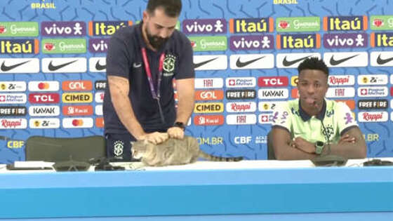 Сотрудник пресс-службы сборной Бразилии по футболу грубо сбросил со стола кота во время выступления нападающего Винисиуса Жуниора. Инцидент случился на пресс-конференции национальной команды перед четвертьфинальным матчем чемпионата мира в Катаре с хорватами. В 1/8 финала бразильские футболисты разгромили команду Южной Кореи со счетом 4:1. Матч четвертьфинала со сборной Хорватии пройдет 9 декабря. Ранее суперкомпьютер FiveThirtyEight оценил шансы команд-участниц выиграть чемпионат мира — 2022 по футболу в Катаре накануне четвертьфинальных матчей турнира. Явным фаворитом ЧМ является национальная команда Бразилии — ее шансы на триумф оцениваются в 33%. Второе и третье места делят португальская и английская сборные — по 14%. В топ-5 фаворитов также попали Аргентина (13%) и Франция (12%). Ранее стало известно, что главный тренер сборной Германии Ханс-Дитер Флик продолжит работу с национальной командой, несмотря на вылет с чемпионата мира в Катаре по итогам группового этапа. 7 декабря специалист провел встречу с президентом DFB Берндом Нойендорфом и вице-президентом Хансом-Йоахимом Ватцке, на которой обсудили текущую ситуацию, а также перспективы национальной команды.