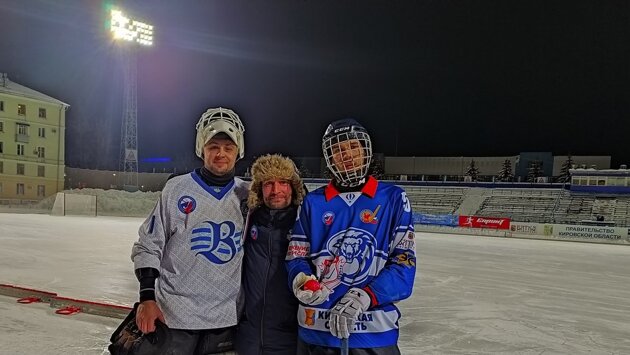 А после матча мы пообщались с Андреем Нагибиным, признавшимся, что забитый мяч был для него «трудовым». А первый забитый мяч молодой хоккеист посвятил своему отцу, Сергею Викторовичу, который работает тренером в СШ «Родина». В этот вечер, пожалуй, на стадионе не было счастливее человека, чем Сергей Нагибин.