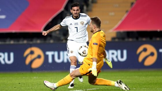 Россиянин отличился на шестой минуте встречи, отправив мяч в сетку ворот соперника с угла штрафной площади.