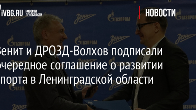 Зенит и ДРОЗД-Волхов подписали очередное соглашение о развитии спорта в Ленинградской области
