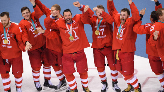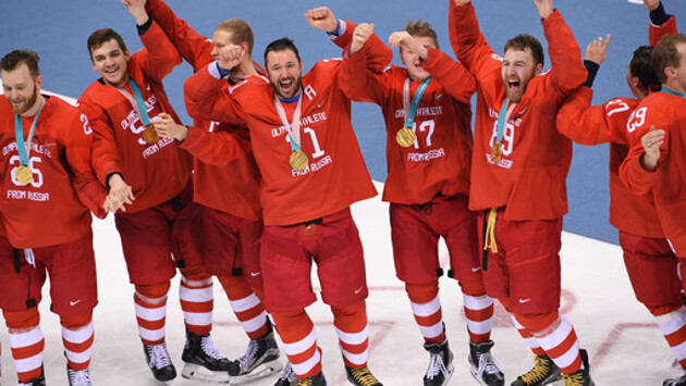 В воскресенье российские хоккеисты в финале олимпийского турнира обыграли сборную Германии в овертайме со счетом 4:3. Во время награждения золотыми медалями хоккеисты вместе с болельщиками пели российский гимн, когда на арене был включен олимпийский гимн.