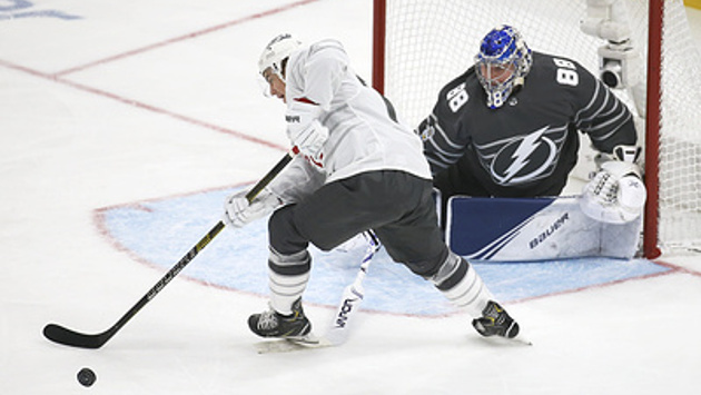 Днем ранее состоялось мастер-шоу звезд НХЛ. Василевский принял участие в конкурсе вратарей, в котором победил вратарь "Сент-Луиса" Джордан Биннингтон.