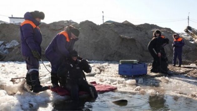 Водитель провалившегося под лед экскаватора остался жив