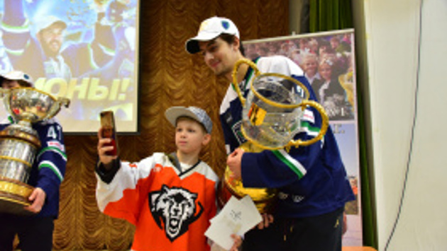 13 мая с ханты-мансийскими ребятами из первой школы встретились нападающие хоккейной команды «Югра» Иван Ежов и Иван Савчик, а также генеральный менеджер команды Сергей Гусев.