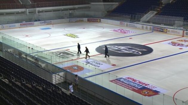 После того как все логотипы займут свои места, заливщики приступят к наращиванию льда. Его толщина должна быть 4-5 сантиметров. Сотни кубов воды предстоит заморозить, чтобы игра началась. Коллектив комплекса всегда болеет за свой «Дизель».