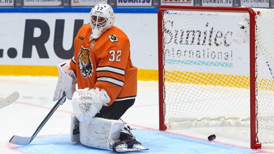Голкипер «Амура» Патрик Бартошак разбил клюшку о борт после замены в матче с «Металлургом»