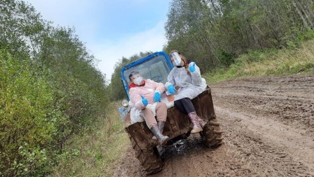 В избирательной комиссии Ярославской области рассказали, что на тракторе в деревню Дорок отправились члены УИК № 1208 Пошехонского района Анастасия Саматова и Ольга Смирнова.