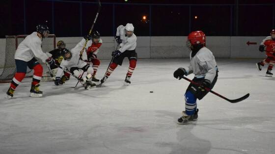 Юные хоккеисты провели вечерний хоккейный матч на юге Москвы