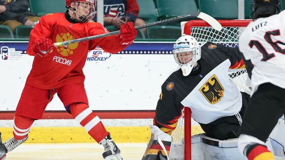 В результате к третьему матчу на ЮЧМ-2021 россияне подошли с одной победой в овертайме и одним поражением в серии буллитов. В ночь на 30 апреля подопечным Лещёва противостояла сборная Германии, но полноценная борьба на льду наблюдалась только в первом периоде, по итогам которого россияне вели со счётом 1:0. Чем дальше продолжался матч, тем сложнее аутсайдеру группы было справляться с атаками российских хоккеистов, и счёт начал расти как на дрожжах.