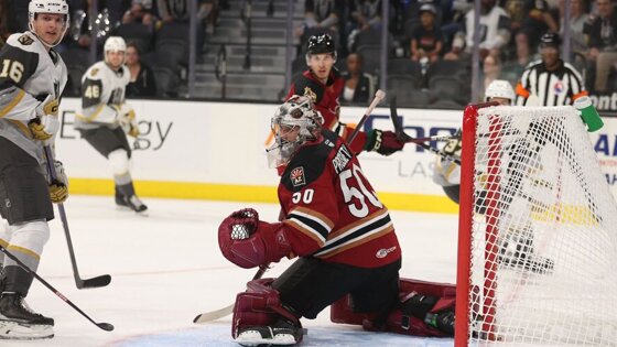 Просветов пропустил 7 шайб в матче АХЛ с фармом «Вегаса». У Чайки – 1-е очко в лиге