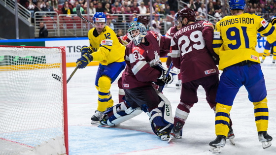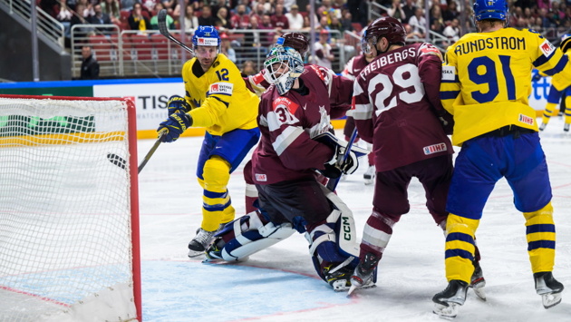 В Риге на стадионе «Арена-Рига» прошёл четвертьфинальный матч чемпионата мира между сборными Швеции и Латвии. Победу со счётом 3:1 (1:0, 0:1, 2:0) одержали хозяева турнира.