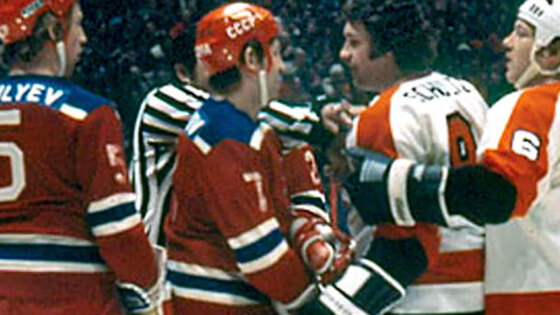 В Северной Америке даже появился термин «флайеризм», под которым подразумевалась грубая, грязная игра. Забавно, что Широ еще с 60-х годов внимательно следил за советским хоккеем. Ездил в СССР, учился по конспектам Тарасова и изучал русскоязычную хоккейную литературу. И все же на льду зачастую отдавал предпочтение другим методам, не делая ставку на комбинационный хоккей.В местных СМИ встреча между «Филадельфией» и ЦСКА подавали как битву за звание чемпиона мира. Смысл понятный. «Филадельфия» выигрывала Кубок Стэнли два последних года, а ЦСКА считался многолетним лидером европейского хоккея. Впрочем, на кону стояла и честь всей НХЛ. Ведь за шесть матчей в серии с русскими победы добилась только «Баффало». Поэтому Шеро негодовал: «Мы оказались в очень странном положении. Нас бесконечно обвиняли в том, что мы позорим хоккей и лигу своей грубой игрой. И вдруг должны спасать честь НХЛ, Канады, да всего света! Разрази меня гром, мы впервые стали хорошими ребятами». Впрочем, хорошими они собирались становиться явно не для армейцев. «Нам еще до матча дали понять, что выиграть не дадут, - вспоминал Михайлов. - На банкете я увидел их знаменитого «Кувалду» Шульца (прославленный тафгай, рекордсмен по количеству штрафных минут за сезон - 472 минуты в сезоне 1974/75), у него бицепсы были вдвое толще моих ног». Ситуацию усугубляла череда травм у армейцев - из строя выбыли Петров, Жлуктов и Цыганков (когда последний находился на льду, ЦСКА в первых трех встречах не пропустил ни одного гола). Не вышел на матч и заболевший Кузькин. То есть московская команда лишилась четырех игроков, которые умели вести силовую борьбу и принимали ее самые жесткие формы.В первом отрезке встречи «летчики» имели просто колоссальное преимущество. Профессионалы ринулись к воротам Третьяка, пытаясь смять защитные редуты «Красной Армии». Старались сразу же затереть армейцев в их зоне, сломить волю, ошарашить, не дать разобраться в происходящем. Голкипер ЦСКА работал в поте лица. По его воротам за первые 20 минут «летчики» нанесли 17 бросков, гости ответили только двумя 2 (!).
