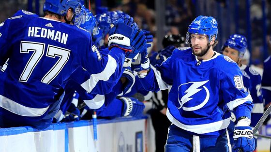 Никита Кучеров набрал 3 очка за 4 минуты и возглавил гонку бомбардиров НХЛ