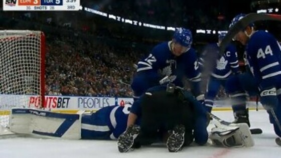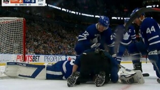 Страж ворот «Торонто Мэйпл Лифс» Илья Самсонов получил повреждение в концовке 3-го периода домашней встречи против «Эдмонтон Ойлерз» (6:3).