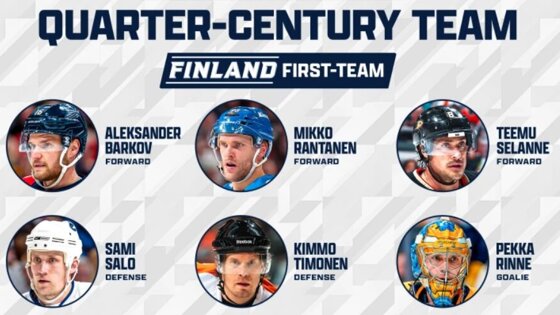 Барков, Рантанен, Селянне и Ринне – в 1-й сборной Финляндии за 25 лет по версии сайта НХЛ. Микко Койву, Филппула и Раск – во 2-й