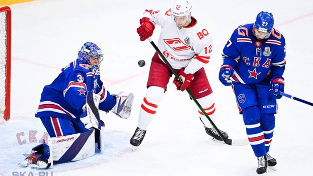 В Санкт-Петербурге завершился матч регулярного чемпионата КХЛ, в котором СКА на одноимённой арене принимал «Спартак». Итоговый счёт встречи – 7:2 в пользу московской команды. Уже на 19-й секунде игры счёт открыл форвард СКА Александр Никишин. Для «Спартака» это не стало ударом, на второй минуте счёт сравнял Александр Беляев, а на 12-й вперёд гостей вывел Александр Пашин. Спустя минуту Никишин оформил дубль и сравнял счёт в матче. Ещё до конца первого периода вторую шайбу на свой счёт записал Пашин, а на 15-й минуте гол забил Герман Рубцов. Во втором периоде феерия голов не закончилась. На 28-й минуте отличился Михаил Мальцев, а спустя секунды хет-трик оформил Пашин. На 35-й минуте большинство реализовал Николай Голдобин. «Спартак» набрал 76 очков и поднялся на второе место в турнирной таблице на «Западе». 27 февраля «красно-белые» сыграют на выезде против минского «Динамо». СКА потерпел второе поражение подряд и остался на седьмой строчке с 71 очком. 27 февраля команда на своём льду примет московское «Динамо».