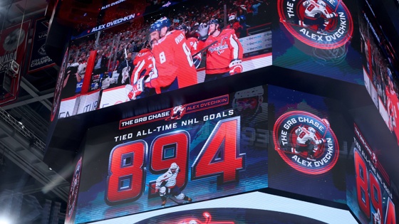 Овечкин забил свои 893-й и 894-й голы, сравнявшись с Гретцки по количеству голов в истории НХЛ, когда его клуб одержал победу со счетом 5:3 над "Чикаго Блэкхокс" на "Кэпитал Уан Арене" в пятницу. В Москве в этот момент было раннее утро. На 6.13 минуте третьего периода Овечкин выкатился в касание из левого круга, обошел вратаря "Чикаго" Спенсера Найта и с передачи Джона Карлсона забил гол в большинстве.