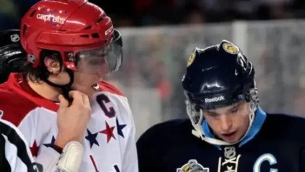 Кросби и Овечкин вышли на лёд вместе с сыном Ови, Сергеем. Это был знак потепления отношений двух хоккейных титанов.