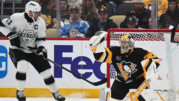 Дебют получился неоднозначным. С одной стороны, россиянин пропустил не самый обязательный гол уже в первом периоде от Анже Копитара с нулевого угла. Впрочем, из колеи вратаря это не выбило – он держался уверенно и в дальнейшем не раз сумел выручить команду, делая впечатляющие сейвы, как этот на Куинтоне Байфилде, когда «Питтсбург», играя в большинстве, прозевал контратаку.