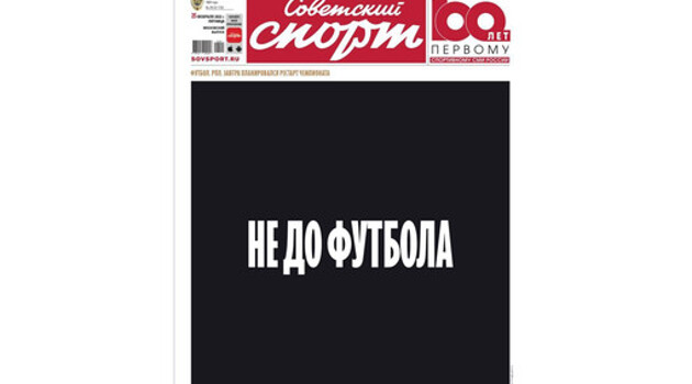 Газета "Советский спорт" вышла с надписью "Не до футбола" на обложке