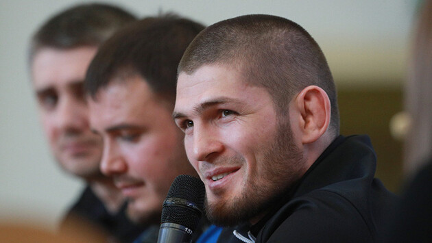 Вместе с братьями Нурмагомедовыми за происходящим следят и другие люди. На кадрах можно услышать русскую речь.