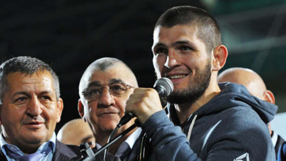 Российский боец смешанных единоборств Хабиб Нурмагомедов вернулся в Дагестан для встречи с болельщиками после победы над Конором Макгрегором. Чествование прошло на стадионе «Анжи-Арена».