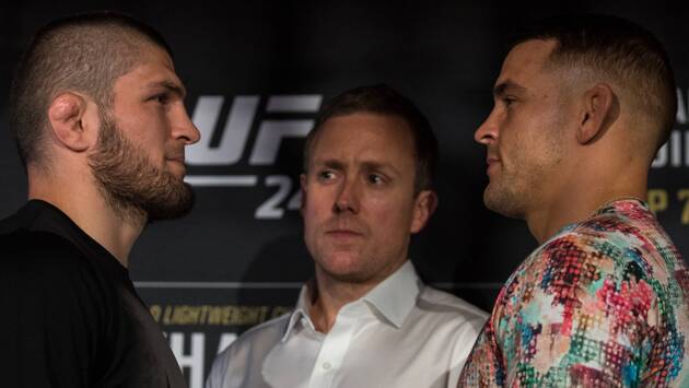 Российский боец смешанного стиля (MMA) Хабиб Нурмагомедов и американец Дастин Порье провели дуэль взглядов накануне их поединка на турнире Абсолютного бойцовского чемпионата (UFC) в Абу-Даби. Видео опубликовано в YouTube-канале MMAFightingonSBN.