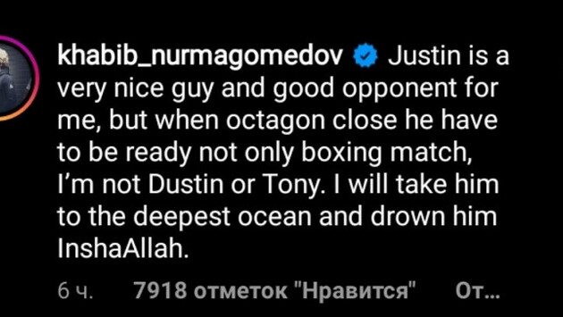 «Я унесу его в самый глубокий океан и утоплю». Хабиб прокомментировал тренировку Гэтжи