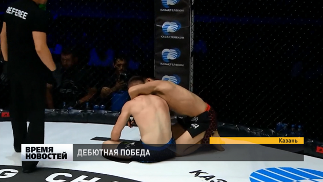 «Завершился бой, я задушил его в первом раунде, завершил удушающим приемом и выиграл. Прошел этот бой, я считаю нормально, ну были какие-то ошибки, но мы будем еще работать над этим, соперник был хороший, местный, из Лениногорска, его зовут Александр Соснин, очень крепкий, очень хороший соперник, хочу поблагодарить его, что он согласился выйти со мной в клетку и разделить клетку».