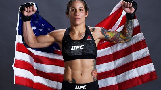 37-летняя американка Лиз Кармуш не нуждается в представлении. Участница первого в истории UFC чемпионского женского поединка (против Ронды Роузи), первая открытая лесбиянка в UFC (её отмечал даже Дана Уайт за смелость), ну и не стоит забывать про военную карьеру. Лиз отдала пять лет морской пехоте, где была авиационным электриком, а также дежурила на Ближнем Востоке (однажды оказалась в шести метрах от взрыва). Словом, человек с именем и историей.