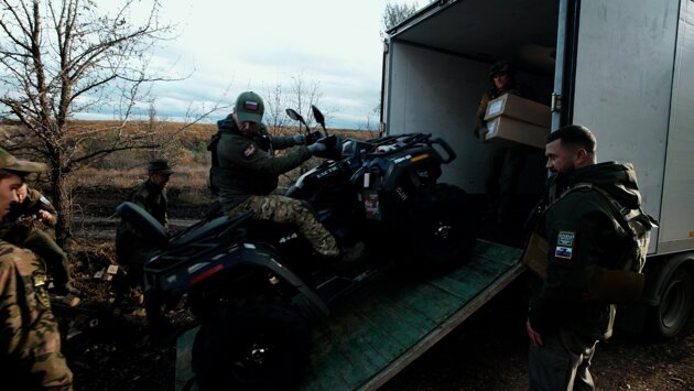 Сопредседатель центрального штаба Народного фронта, генеральный директор ПАО «КАМАЗ» Сергей Когогин и руководитель исполкома Народного фронта Михаил Кузнецов приехали на передовую, чтобы передать бойцам технику.