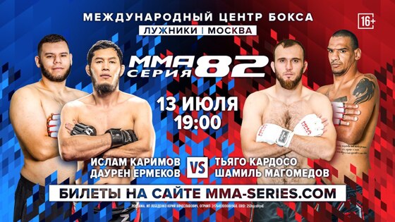 ММА Серия-82. 13 июля. Международный Центр Бокса, «Лужники» (Новолужнецкий пр-д, 13). Начало турнира в 19:00 мск. Билеты в продаже на сайте www.mma-series.com