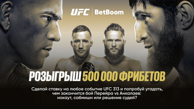 BetBoom, официальный партнер UFC в России, запускает специальную акцию с розыгрышем полумиллиона фрибетов среди своих клиентов. Российской боец, Магомед Анкалаев на UFC 313 будет противостоять действующему чемпиону в полутяжелом весе Алексу Перейре, у которого зафиксирован самый сильный удар в ростере. Это будет долгожданный шанс для российского спортсмена получить чемпионский титул. Ожидается грандиозное противостояние бразильской школы кикбоксинга с боевым самбо, черный пояс джиу-джитсу против мастера спорта по самбо. Для участия в конкурсе переходите на сайт, укажите кто и как победит в бою Перейры и Анкалаева, совершите ставку от 700 рублей на любое событие UFC 313 до 9 марта 7:30 (по Мск). BetBoom 10 марта выберет 100 победителей среди тех, кто выполнил условия и начислит каждому по 5 000 фрибетов.