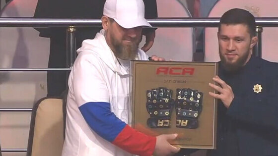 Церемония состоялась во время турнира ACA 189, прошедшего в пятницу в Грозном. Кадыров получил специальные перчатки в трофейной рамке.