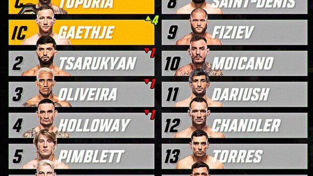 Американец опередил Армана Царукяна, Чарльза Оливейру и Макса Холлоуэя. Возглавляет дивизион по-прежнему Илия Топурия, владеющий постоянным титулом.