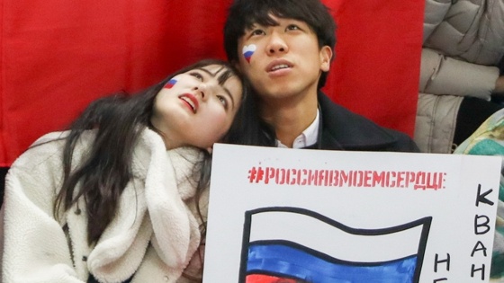 На фоне многочисленных россиян, поддерживающих спортсменов из России на зимних Олимпийских играх в Пхёнчхане, ярко выделяется многочисленная группа южнокорейцев в голубых шарфах и такого же цвета теплых наушниках. Они с легким акцентом скандируют кричалки на русском языке, размахивают триколорами и хорошо поставленными голосами периодически затягивают "Катюшу".
