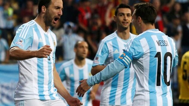 В самом ожидаемом в России матче Кубка Америки Аргентина обыграла Ямайку с минимальным счетом благодаря голу Игуаина, а Уругвай и Парагвай разошлись миром, который устраивал обе команды. На Кубке Америки наконец-то состоялся матч, которого ждали все российские любители футбола, хотя бы отдаленно знакомые с творчеством группы «Чайф» (а других, кажется, и не бывает). Аргентина снова, как и в 1998 году, встречалась с Ямайкой, правда, теперь совсем в другом составе и на турнире пониже уровнем, но все предматчевые расклады указывали на то, что повторение знаменитых 5:0 здесь вполне вероятно. Не то чтобы Аргентина блистала в предыдущих матчах «Копы», но все же выглядела явным фаворитом даже на фоне мощных сборных Парагвая и Уругвая, что уж говорить о скромной ямайской дружине. К тому же встреча с Ямайкой стала сотой игрой Лионеля Месси в майке национальной команды, и в честь юбилея форвард «Барселоны» даже надел особые голубые бутсы с надписью «100». Ранее лишь четыре футболиста провели больше матчей за «альбиселесте»: Диего Симеоне (106), Хавьер Маскерано (114), Роберто Айяла (115) и Хавьер Санетти (145). К сожалению, матч не оправдал ожиданий болельщиков. На 11-й минуте Гонсало Игуаин в окружении трех защитников забил с разворота после прострела Анхеля Ди Марии в штрафную, но на этом запал Аргентины иссяк, а ямайцы слишком неохотно шли в атаку. Надежда Ямайки не умирала вплоть до финального свистка, но лица прекрасных ямайских женщин в этот день вновь были печальны. Островная команда совсем неплохо смотрелась в самой представительной группе турнира, но проиграла все три матча с одинаковым счетом 0:1. Впрочем, на этот раз никому не пришлось прощать слабость и слезы ямайцев, поскольку нынешнее поражение они восприняли куда веселее. Нападающий сборной Ямайки Дешорн Браун после матча даже успел сделать радостное селфи с Месси. Главный тренер ямайцев Винфрид Шефер тоже остался доволен игрой своих подопечных. «Я горжусь своими ребятами, — подчеркнул наставник. — Во втором тайме моя команда разыгралась, стала действовать более активно.