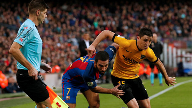 Матч 12-го тура чемпионата Испании между "Барселоной" и "Малагой" закончился ничьей со счетом 0:0. Каталонцы без своего нападающего Лионеля Месси, пропустившего игру из-за проблем с желудком, на протяжении всей встречи осаждали ворота "медуз", но так и не смогли забить. Также в матче не принимал участия другой форвард сине-гранатовых Луис Суарес. Гости заканчивали встречу в меньшинстве из-за удалений Диего Льоренте и Хуана Карлоса, но смогли стойко продержаться до финала в первую очередь благодаря отличной игре голкипера Карлоса Камени. Испания. Примера. 12-й тур. "Барселона" (Барселона) - "Малага" (Малага) - 0:0 Предупреждения: нет - Рикка, 22; Онтиверос, 62. Удаления: нет - Льоренте, 68; Карлос, 90+7.
