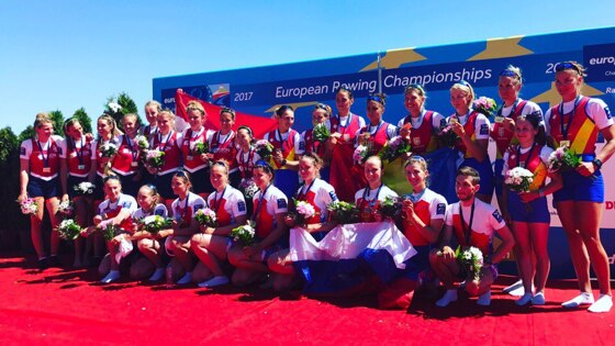 Российский экипаж восьмерки с рулевой завоевал бронзу в чемпионате Европы по академической гребле. В составе национальной команды победителями стали Алевтина Савкина, Анастасия Тиханова, Елена Орябинская, Екатерина Потапова, Анна Карпова, Валентина Плаксина, Анна Аксенова, Юлия Калиновская и Екатерина Копаева. Первое место заняли представительницы Румынии, вторыми стала сборная Нидерландов. Академическая гребля. Чемпионат Европы. Чехия Женщины. Восьмерка с рулевой 1. Румыния - 6.10,35. 2. Нидерланды - 6.12,86. 3. Россия - 6.16,05.