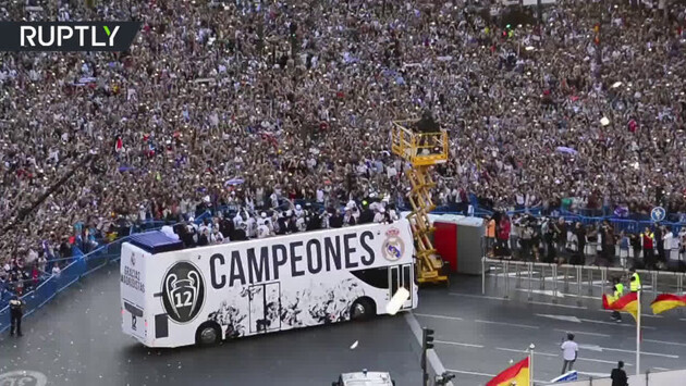 «Реал» после возвращения из Кардиффа, где в субботу в финале Лиги чемпионов мадридская команда разгромила «Ювентус» (4:1), принял участие в праздничном параде. Команда проехалась по улицам Мадрида на автобусе с открытом верхом. «Сливочные» показали тысячам болельщиков, собравшихся поприветствовать свою команду, трофей Лиги чемпионов. Традиционно «Королевский клуб» празднует свои большие победы на Пласа Сибелес, где находится статуя языческой богини плодородия Кибелы. Видео можно посмотреть в официальном «Твиттере» «Реала».