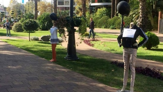 На Навагинской в Олимпийской столице выставлены манекены, которые олицетворяют конкретных людей, погибших от наркотиков. Жители города должны делать с ними фотографии и отправлять в социальные сети. В настоящий момент снимков пока нет, сообщает телеграмм-канал «Сочи сейчас». «ФедералПресс» напоминает, что в Челябинске запустили необычный экологический флешмоб. Жителям города предлагают сделать фото дымящей трубы и выложить его в соцсетях с хэштегом #ЗдесьТруба. Фото: телеграмм-канал «Сочи сейчас»