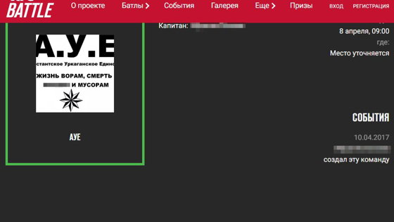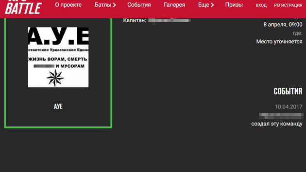 Команда под названием АУЕ подала заявку на участие в чемпионате по футболу KFC Battle. Карточка команды из Тюмени опубликована на официальном сайте турнира. На баттл собираются семь игроков в возрасте от 14 до 16 лет. Выступать они будут под лозунгом «Жизнь ворам, смерть б***ям и мусорам». А матч назначен на утро 8 апреля. «360» обратил внимание организаторов на эту заявку. Директор по внешним коммуникациям YUM Restaurants International Russia Илья Политковский рассказал, что карточку удалят. Большое вам спасибо за то, что увидели данную команду. Мы их срочно удалим с сайта и дисквалифицируем. Они не смогут больше участвовать в проекте — Илья Политковский. АУЕ расшифровывается как «арестантское уркаганское единство» или «арестантский уклад един». Это популярная у школьников субкультура с криминальным уклоном. Они интересуются тюремной жизнью, воровской средой и идеологией. Ранее «360» общался на тему АУЕ с членом общественной палаты России Артемом Кирьяновым. Он рассказывал, что большинство детей в эту субкультуру приводят проблемы. «Проблема вовлеченности в АУЕ существует в больших городах — там заключенные работают с подростками, попавшими в тяжелую жизненную ситуацию», — считает Кирьянов. Писатель и специалист по тюремной жизни Виталий Лозовский, напротив, считает, что АУЕ — не более чем молодежная культура и романтизированное представление о тюремном мире. По его мнению, движение популярнее в глубинке. «Они не видят в окружающих справедливости и находят в этом движении. Оно очень популярно, и я часто сталкиваюсь с этим в российских глубинках. Там молодежь живет идеологией АУЕ», — рассказывал он.