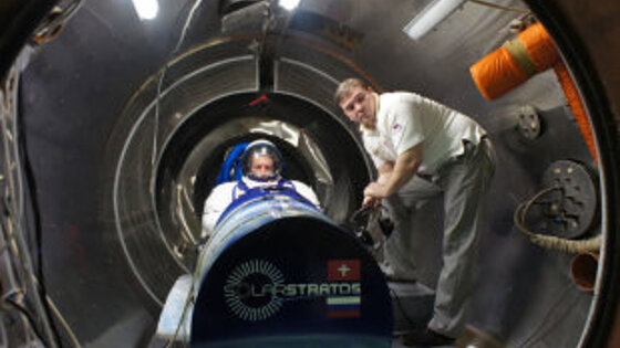 И она же, одноглазая коробка экшн-камеры размером с кубик Рубика, привинченная на палку-монопод для селфи, стала главной виновницей того, что на высоте вдвое выше Эвереста, когда температура в кабине опустилась до -50 градусов по Цельсию, правая нога у пилота стала замерзать... А ведь две трети рекордной дистанции было пройдено и до цели оставалось всего "каких-то" 7-8 километров! - Rafael is fine, - поспешили успокоить друзья-соратники из команды Рафаэля Домжана приехавших вместе с ними швейцарских журналистов, которые снимали на фото и видео едва ли не каждый шаг своего соотечественника в стенах российского Научно-производственного предприятия "Звезда". А потом, через переводчика, пояснили уже для всех: набор высоты пришлось остановить, термобарокамера переведена в режим снижения. Увертюра в посольстве В тот день в подмосковном поселке Томилино, где находится НПП "Звезда" - НИИ, КБ и уникальное производство, собранные в одно целое, - с участием швейцарского пилота проводили испытания скафандра для интернационального проекта SolarStratos. Что это за проект, какие цели преследует и кто вовлечен в международную кооперацию, рассказал перед этим в Москве, в резиденции посла Швейцарской Конфедерации, пилот-исследователь, гражданин Швейцарии Рафаэль Домжан. Несколько лет назад он и его соратники заявили о себе кругосветным плаванием на тримаране под "солнечными парусами". Теперь, исповедуя тот же принцип only Solar, команда энтузиастов решила штурмовать стратосферу - подняться на 25 километров в самолете на солнечных батареях. Исповедуя принцип only Solar, команда энтузиастов решила штурмовать стратосферу - подняться на 25 километров К проектированию и постройке такого летательного аппарата швейцарцы привлекли известную немецкую компанию. А солнечные панели было решено приобрести в США. Прототип самолета уже создан и в мае 2017 года совершил пробный полет. Правда, пока лишь на высоте 250-300 метров и всего шесть минут. Длина планера - 8,5 метра, размах крыльев - 24,8 метра. На их поверхности смонтированы панели с фотоэлементами общей площадью 22 квадратных метра. При конструировании и строительстве самолета старались использовать облегченные конструкции и композитные материалы, чтобы максимально снизить вес машины. Сейчас он всего 450 килограммов. По облегченной схеме сделана и пилотская кабина - над головой у летчика лишь прозрачный фонарь для защиты от набегающего воздушного потока. А если кабина пилота негерметична, то ему на все время полета потребуется скафандр с автономной системой жизнеобеспечения - как у космонавтов. Где такие делают - и делают успешно? В России - на НПП "Звезда". Именно тут были созданы скафандры для Юрия Гагарина и Алексея Леонова - первых землян на космической орбите и в открытом космосе. Исполнив свою миссию, эти два оранжевых раритета вернулись на место рождения и сейчас хранятся как бесценные реликвии на самых почетных местах в музее предприятия. Тем временем "Звезда" обеспечивает новыми, все более совершенными скафандрами и защитным снаряжением наших космонавтов, астронавтов NASA и EKA, сменяющих друг друга на МКС. Антиперегрузочные костюмы и дыхательные системы для военных летчиков, катапульты и другие средства спасения при авариях - это тоже вахта и ответственность коллектива, что носит теперь имя своего легендарного директора Гая 