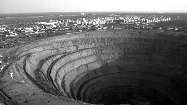 В черте якутского города Мирный находится карьер, который считается одним из чудес не только России, но и, пожалуй, всего мира, — легендарная кимберлитовая трубка «Мир». В 2017-м, после страшной аварии, рудник законсервировали и обозначили срок его восстановления: пять-семь лет. О восстановительных работах рассказали и на пресс-конференции компании «Алроса», которая прошла с участием Ростехнадзора 27 апреля. А пока специалисты решают, как возродить «Мир», вспомним историю рудника, который разрабатывали больше полувека.