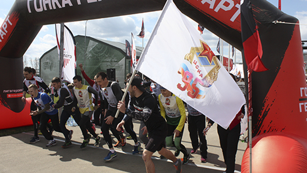 Соревнование прошло на новой трассе с 38 препятствиями, среди которых 11 рукоходов. Перепады высот на трассе достигали 26 метров, а общая протяженность маршрута составила 9,5 километров. Сегодня, в День образования Центрального спортивного клуба Армии, большой десант армейских спортсменов «высадился» на территории военного полигона Алабино в Подмосковье. Здесь прошло открытие летнего сезона 2018 года федерального проекта "Гонка Героев". Поскольку мероприятие совпало по времени с 95-летием ЦСКА, значительная часть спортивной и развлекательной части программы прошла в атмосфере празднования юбилея Клуба. В составе спортивного десанта были начальник ЦСКА полковник Артем Громов, первый заместитель начальника ЦСКА, двукратная олимпийская чемпионка полковник Светлана Хоркина, заместители начальника клуба подполковники Роман Кудрявцев и Олег Пархоменко. Армейским спортсменам пришлось соревноваться со 140 другими командами, приехавшими на открытие сезона со всей страны. Соревнование прошло на новой трассе с 38 препятствиями, среди которых 11 рукоходов. Перепады высот на трассе достигали 26 метров, а общая протяженность маршрута составила 9,5 километров. Поддержать свою команду и провести массовую разминку для участников соревнований приехали выдающиеся спортсмены ЦСКА – четырехкратный олимпийский чемпион Алексей Немов, двукратный олимпийский чемпион Дмитрий Саутин, олимпийская чемпионка Анна Сивкова, призер олимпийских игр Антон Чупков, чемпионка мира Ксения Рыжова. Но не только в забеге участвовали спортсмены ЦСКА. В зоне разминки своё мастерство продемонстрировали молодые армейские спортсмены. Они участвовали в интереснейших мастер-классах по фехтованию, армреслингу и традиционному русскому силовому виду – гиревому спорту. Концертная программа чередовалась с показательными выступлениями подразделений ВДВ. Как и положено на военном полигоне, присутствовавших радушно угощали чаем и вкусной солдатской кашей. Тем временем команда ЦСКА уверенно обходила на маршруте одну за одной команды соперников, приближаясь к финалу. На последнем испытании – новинка акции – 9-метровое препятствие под названием «Олимп». Но спортсменов ЦСКА не испугать громкими именами. Через пару минут «Олимп» покорился и чумазые, но довольные участники армейской команды скатились к его подножию прямо к финишной черте. Победа!