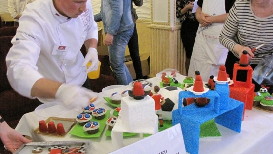 Состоялся окружной этап конкурса «Московские мастера» по профессии «Кондитер». Специалист из Соколиной горы стал вторым. Всего в профессиональном соревновании участвовали шестеро конкурсантов. Соколиную гору представил Игорь Мантаев. Кондитерам предстояло пройти пять испытаний, в том числе – определить рецепт торта, представить самопрезентацию, проверить вкусовую память. Конкурсанты представили на суд жюри авторские изделия по теме «Чемпионат мира по футболу-2018». Игорь Мантаев, сотрудник кафе «Московский дворик», стал обладателей диплома в номинации «Самый спортивный десерт» и стал вторым на конкурсе профмастерства. Победу завоевал Сергей Логоненко из Новогиреева, а третьей стала Екатерина Овчинникова из района Восточное Измайлово. Фото: Владислава Дябина.