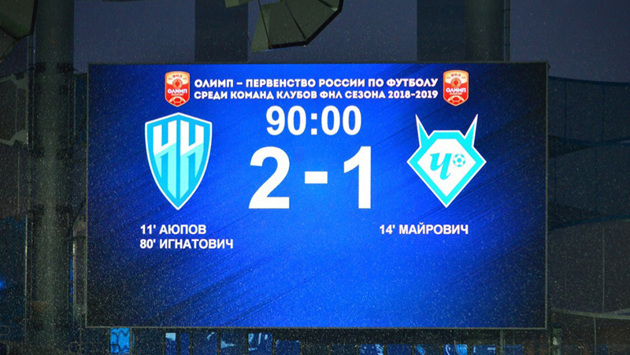 Продолжаем побеждать дома! ФК «Нижний Новгород» одержал непростую победу В четвертом туре «Нижний Новгород» одержал победу, сломив сопротивление молодой и амбициозной команды «Чертаново». НИЖНИЙ НОВГОРОД (Нижний Новгород) – ЧЕРТАНОВО (Москва) – 2:1 (1:1) 4 августа. Нижний Новгород. «Стадион Нижний Новгород». 14915 зрителей. Судьи: В. Сельдяков (Балашиха), Д. Жвакин (Ленинградская область), А. Веретешкин (Санкт-Петербург). «Нижний Новгород»: Сысуев, Хрипков (Фомин, 56), Абрамов (Абазов, 73), Хайруллов, Морозов, Федорив, Игнатович, Палиенко (Сергеев, 66), Аюпов, Симанов (Нежелев, 63), Делькин. «Чертаново»: Ломаев, Паршиков, Редькович, Бартасевич, Ежов, Витюгов, Горшков (Молчанов, 87), Умяров, Майрович (Колесниченко, 67), Сарвели (Тюменцев, 88), Зиньковский. Голы: 1:0 – Аюпов (11), 1:1 – Майрович (14), 2:1 – Игнатович (80). Предупреждены: Игнатович (12), Федорив (15), Нежелев (89) – Зиньковский (32), Витюгов (84), Сарвели (86). Статистика матча. Удары по воротам – 11:5. Удары в створ ворот – 3:3. Угловые – 6:2. Голевые моменты – 4:2. Игра началась под диктовку нижегородцев. И вновь наша команда забила быстрый гол. Удар Аюпова из-за пределов штрафной вратарь москвичей отбил неудачно: мяч от рук Ломаева влетел в сетку. Но чертановцы нашли достойный ответ буквально через пару минут. Майрович после передачи Сарвели убежал в контратаку и неотразимо пробил под перекладину. После этого инициатива вновь перешла к хозяевам. Новобранец «Нижнего Новгорода» Палиенко, убрав на замахе защитника, «выстрелил» рядом с дальней штангой. А затем Федорив прорвался по флангу и сделал подачу на ближний угол вратарской, где всех опередил Делькин – увы, мяч вновь разминулся со створом ворот. После перерыва игра шла до гола, и его забили нижегородцы. Игнатович после удара Аюпова переправил «футбольный снаряд» впритирку со штангой, отпраздновав победный мяч потрясающим кульбитом! Гости могли отыграться после подачи углового, но Сысуев не позволил мячу пересечь линию ворот. В итоге – 2:1. «Нижний» продолжает радовать болельщиков, коих на стадионе в этот дождливый вечер собралось почти 15 тысяч. После игры Дмитрий ЧЕРЫШЕВ, главный тренер «Нижнего Новгорода»: — В первую очередь хочу поблагодарить болельщиков. Без их поддержки мы не добились бы того, что сделали сегодня. Ребята отдавались игре полностью. Получился очень тяжелый матч. «Чертаново» — молодая, быстрая команда, где собраны талантливые ребята. Один раз они все же поймали нас на контратаке. Ну а нам нужно лучше использовать моменты, которые мы создаем. В первом тайме их было немало. А после перерыва ребята немного подсели. Но в последние 15 минут вновь включились и все-таки дожали соперника. Рад, что оба мяча мы забили с игры. Давайте сегодня порадуемся за ребят, а уже завтра мы начнем готовиться к матчу с «Лучом». Будем стараться радовать наших болельщиков и в дальнейшем. Игорь ОСИНЬКИН, главный тренер ФК «Чертаново»: — Прекрасный стадион, отличное поле, сильный соперник. С самого начала матча в силу своей молодости и небольшого игрового опыта наши ребята попали под серьезное давление. Очень обидно было пропустить решающий гол в концовке. Но объективно «Нижний Новгород» был сегодня сильнее. Матч выдался боевой, интересный для зрителей. Трагедию из поражения делать не будем. Сделаем правильные выводы и будем двигаться дальше. Тимур АЮПОВ, полузащитник «Нижнего 